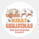 Sticker Rond Camping Joyeux renne de Noël Nom personnalisé
