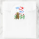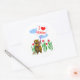 Stickers avec ma conception d'un petit personnage castor tenant une pancarte qui dit "Je coeur le Québec" avec un coeur rouge et des fleurs.