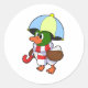 Sticker Rond Canard à la pluie avec parapluie