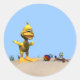 Sticker Rond Canard caricaturé mignon et crabe sur la plage