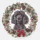 Sticker Rond Caniche Noir Pinecone Rouge Bow Wreath Noël