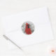 Cet autocollant présente un brillant cardinal rouge. Il est vraiment le roi des oiseaux jardins ! Ici, il est perché sur un rail enneigé mangeant des graines de tournesol à l'huile noire tandis que la neige d'hiver tourbillonne autour de lui.