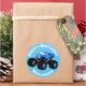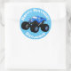 Sticker Rond Caricature de camion monstre bleu mignon anniversa