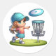 stickers de golf sur disque avec un joli dessin animé d'une petite fille jouant au golf sur disque.