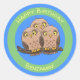 Sticker Rond Caricature en trio de chouette