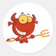 Sticker Rond Caricature Petit Diable Avec Pitchfork