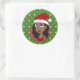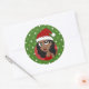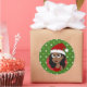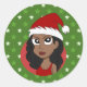 Design avec une illustration de la belle jeune femme afro-américaine aux cheveux ondulés et casquette du Père Noël, Noël design avec un arrière - plan vert aux étoiles, par Radka Kavalcova