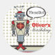 Sticker Rond Caricature Robot Rétro Cute Kids Boy Fête d'annive