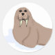 Un joli morse à visage dessiné reposant sur une parcelle de glace.