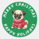 Cet adorable autocollant présente un chien de Carlin festif et des phrases joyeuses "Joyeux Noël" et "Joyeux Fêtes". Il est parfait pour ajouter une touche spéciale à vos fêtes de fin d'année. Utilisez-le pour décorer des enveloppes et des cartes, sceller des sacs et des cadeaux de fête, ou ajouter un air festif aux colis que vous envoyez par la poste.
