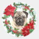 Sticker Rond Carlin Chien Poinsettia Holly Crème de Noël