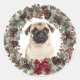 Sticker Rond Carlin Chien Rouge Bow Pinecone Wreath Noël
