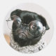 Sticker Rond Carlin noir mignon avec lunettes Photo Chien