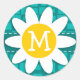 Sticker Rond Carré Turquoise; Carré rétro; marguerite