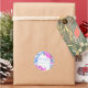 Autocollants de remerciement de mariage sur le thème de la Méditerranée grecque de Santorin Mykonos élégant avec des tuiles bleues et des bougainvillées.