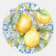 Sticker Rond Carrelage et citrons d'aquarelle italien bleu et b