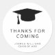 Un autocollant minimaliste de graduation avec une casquette de graduation et "Merci d'être venu" en gros caractères, avec le nom du diplômé et l'année de classe en noir sur un arrière - plan blanc. Ces autocollants modernes et simples peuvent être pour un garçon ou une fille diplômé et sont grands comme enveloppes sceaux ou pour les faveurs de la fête.