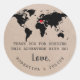 Tan kraft papier arrière - plan avec une carte du monde merci étiquette pour une destination mariage ou voyage thème fête préférez les cadeaux ou les sacs de bienvenue - merci à vos invités pour faire le voyage pour célébrer votre mariage d'aventure, la fête ou la mitzvah! ・ ・ ・ ・ ・ ・ ・ ・ Cliquer PLUS loin sur la PERSONNALISER pour changer la couleur, les polices, la couleur et la disposition de l'arrière - plan et de l'autocollant, et déplacer l'emplacement central sur la carte. ・ ・ ・ ・ ・