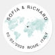 Sticker Rond Carte du monde mariage Aquarelle Coeur amovible