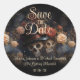 Découvrez l'attrait mystérieux et la romance sombre de mon autocollant de mariage Vintage gothique Roses roses et rousses Squelettes qui s'embrassent Save the Date. Cette annonce unique, représentant des squelettes qui s'embrassent au milieu de roses roses et rousses, donne le ton pour votre mariage inspiré du gothique.