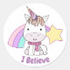 Adorable licorne assise avec arc-en-ciel et étoile, conçu pour les petits croyants.