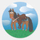Sticker Rond Cartoon mignon Cheval de l'Ouest