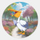Sticker Rond Cartoon mignon Pélican avec Poisson, Oiseau de mer
