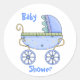 Baby shower sucré / enveloppe de faire-part scellée. Des graphismes mignons d'un bébé buggy coloré, sur un arrière - plan blanc, avec un Baby shower de lecture de texte bleu, que vous pouvez personnaliser pour lire tout ce que vous voulez. Une touche finale à l'invitation de la douche d'un bébé garçon.
