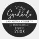 Célébrez votre diplômé avec style avec cet autocollant de graduation noir et blanc moderne, mettant en vedette un élégant script "Diplômé", une illustration élégante de casquette de graduation et un texte personnalisable pour le nom du diplômé, l'école et l'année de promotion. Parfait pour sceller les invitations, décorer les faveurs ou ajouter une touche personnelle à la décoration de la fête. Un design chic et intemporel pour toute célébration de fin d'études secondaires ou universitaires.