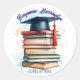 Sticker Rond Casquette de graduation d'aquarelle avec pile de l