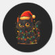 Sticker Rond Cat Black Christmas Tree Lights Funny Santa Kitten