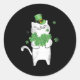 Sticker Rond Cat Leprechaun Chat Shamrock St Patrick'S Day