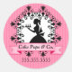 © 2012 Socialite Designs. Notre autocollant de boulangerie cake pops incorpore une silhouette femme, tenant trois pops cake pops sur un plateau, avec une élégante bordure de défilement et ruban pour votre nom d'entreprise.