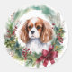 Sticker Rond Cavalier King Christmas Wreath Festive Pup