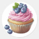 Sticker Rond Ccupcake à la crème rose avec baies anniversaire