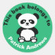 Ce Livre Appartient Aux Garçons Panda Bear Kawaii Green Stickers. Face de mignon panda ours sur un arrière - plan vert vif. texte : "ce livre appartient à" en noir. Le nom est en blanc. www.SamAnnDesigns.com