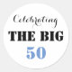 Célébration du GRAND autocollant de 50 anniversaires avec la typographie noire et bleue traditionnelle.