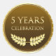Autocollant de célébration de cinq ans en or avec une couronne de laurier.