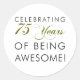Célébration de 75 Ans D'Être un autocollant rond classique génial. Un grand autocollant pour un 75e anniversaire. Faites savoir à quelqu'un qui atteint soixante-quinze ans qu'ils sont géniaux !