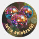 Fêtons ! sticker avec trois boules de disco colorées sur un arrière - plan vibrant. Le texte est dans une police dorée. Si vous voulez un autre texte, il est personnalisable et facile à modifier. Cet autocollant convient à la plupart des événements, fêtes et célébrations. Ajoutez à votre courrier, vos sacs-cadeaux, vos fournitures de fête ou autres. Disponibles dans plusieurs tailles. Feuilles d'autocollants de 6 ou 20.