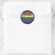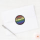 Le drapeau de la fierté arc-en-ciel sur un bouton circulaire.
