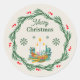 Sticker rond classique en crème et vert Joyeux Noël Circle