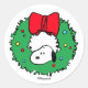 Sticker Rond Cercle de Noël Snoopy avec nœud | Peanuts