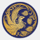 Sticker Rond Cercle Phoenix Jaune Traditionnel sur Bleu