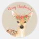 Sticker Rond Cerf de Noël Mignon Rustique Fêtes Personnalisées