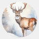 Cerf en forêt neigeuse Noël Arbres d'eau Aquarelle Classic rond Sticker