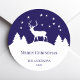 Sticker Rond Cerf Noël Bleu Blanc Cerf élégant en hiver