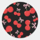 Sticker Rond Cerises rouges avec coquette cabot rose fête d'ann