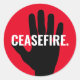 Sticker Rond Cessez le feu rouge blanc noir main gras texte per