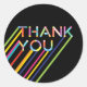 Fun, brillant et cool laser tag thème fête d'anniversaire merci sticker. Le design comprend un design typographique couleur "It's Game On" avec des poutres de lumières lumineuses de plusieurs couleurs qui s'échappent du texte. L'arrière - plan noir met l'ambiance avec les poutres laser lumineuses créant un look audacieux.